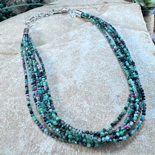 16" Seven Strand Ruby Zoisite Beaded Necklace by Artie Yellowhorse
