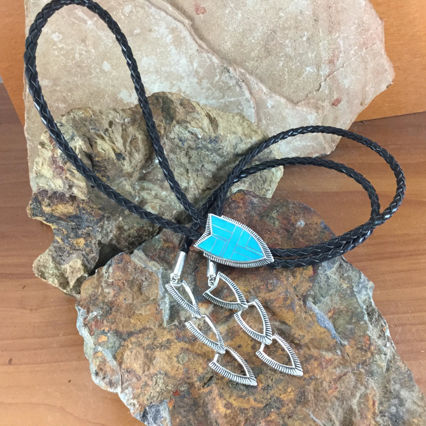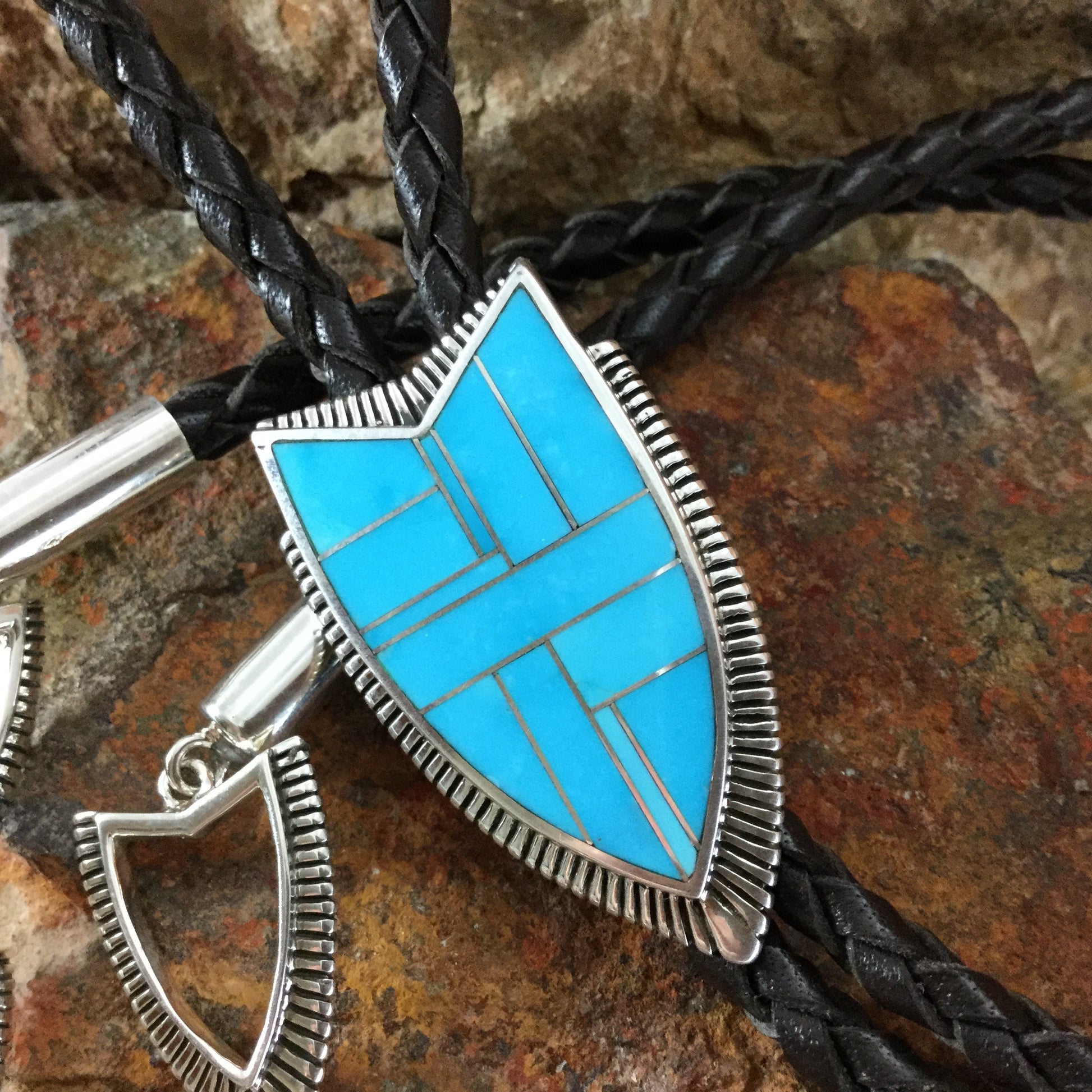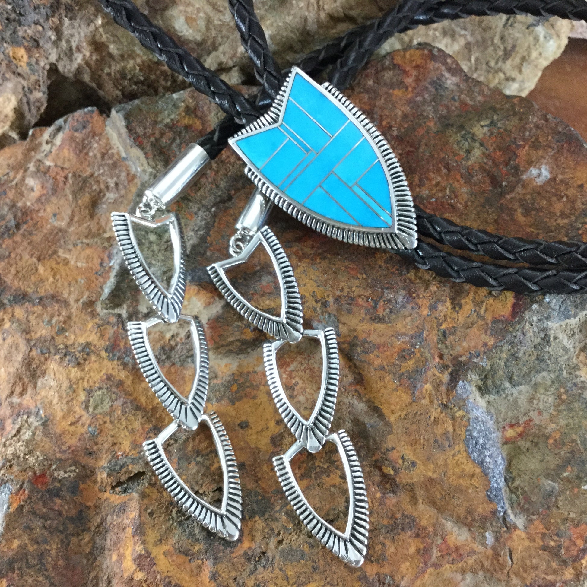 Ask a question about David Rosales Kingman Turquoise Inlaid Sterling Silver Bolo 'Golo' Tie