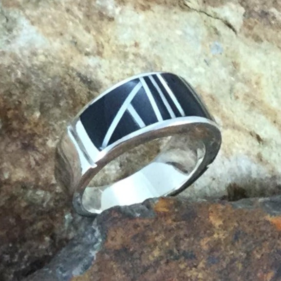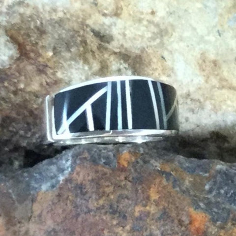 David Rosales Tuxedo Inlaid Sterling Silver Ring