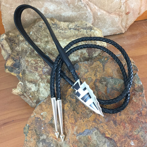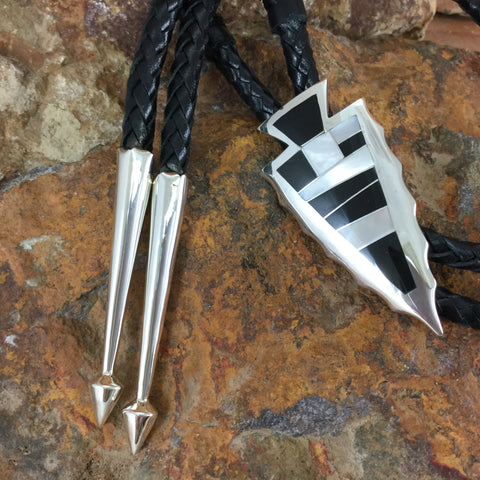 David Rosales Tuxedo Inlaid Sterling Silver Bolo Tie