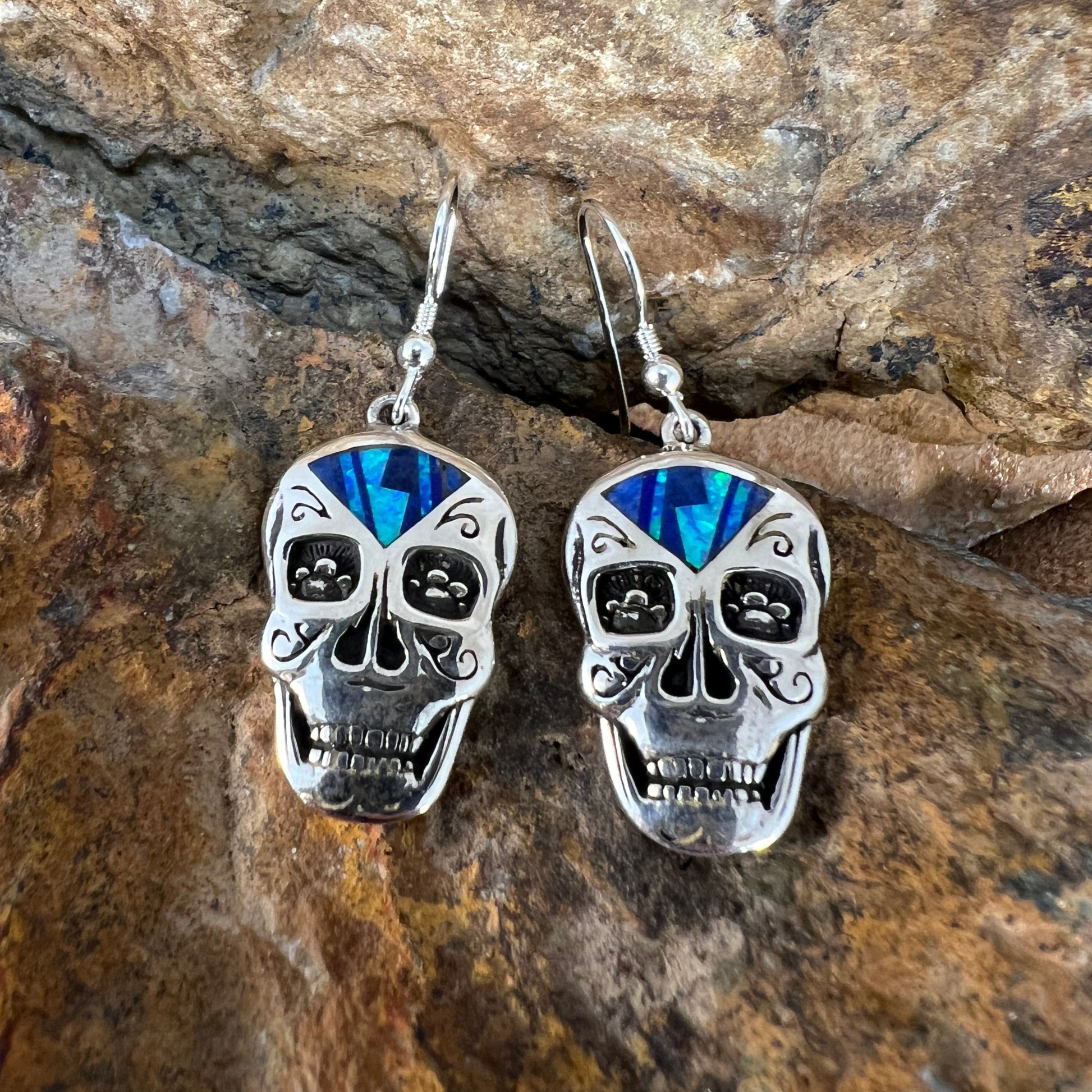 David Rosales Blue Sky Inlaid Sterling Silver Earrings Sugar Skull