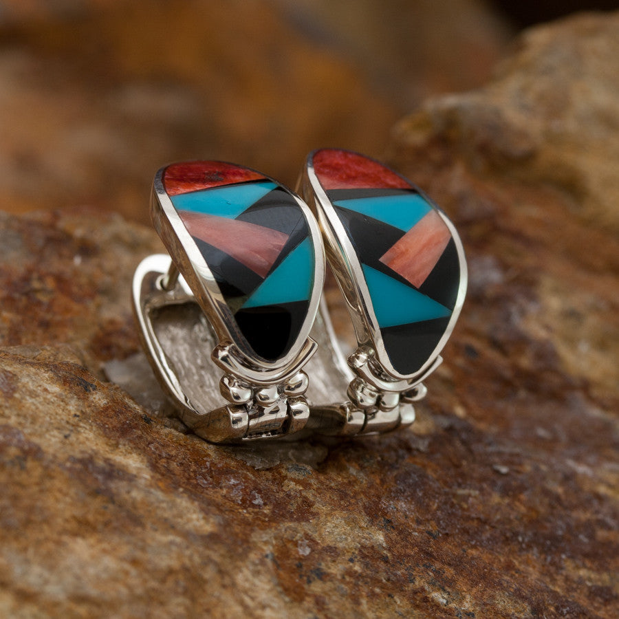 David Rosales Red Canyon Inlaid Sterling Silver Earrings Huggie
