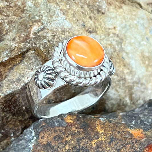 David Rosales Red Moon Inlaid Sterling Silver Ring w/ CZ