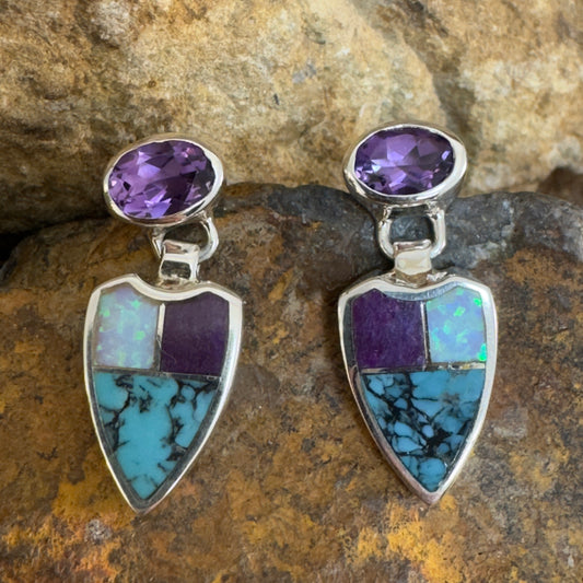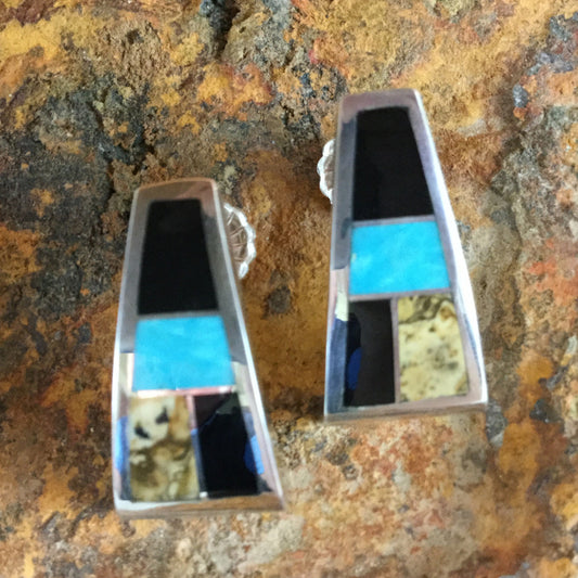 David Rosales Shalako Inlaid Sterling Silver Earrings
