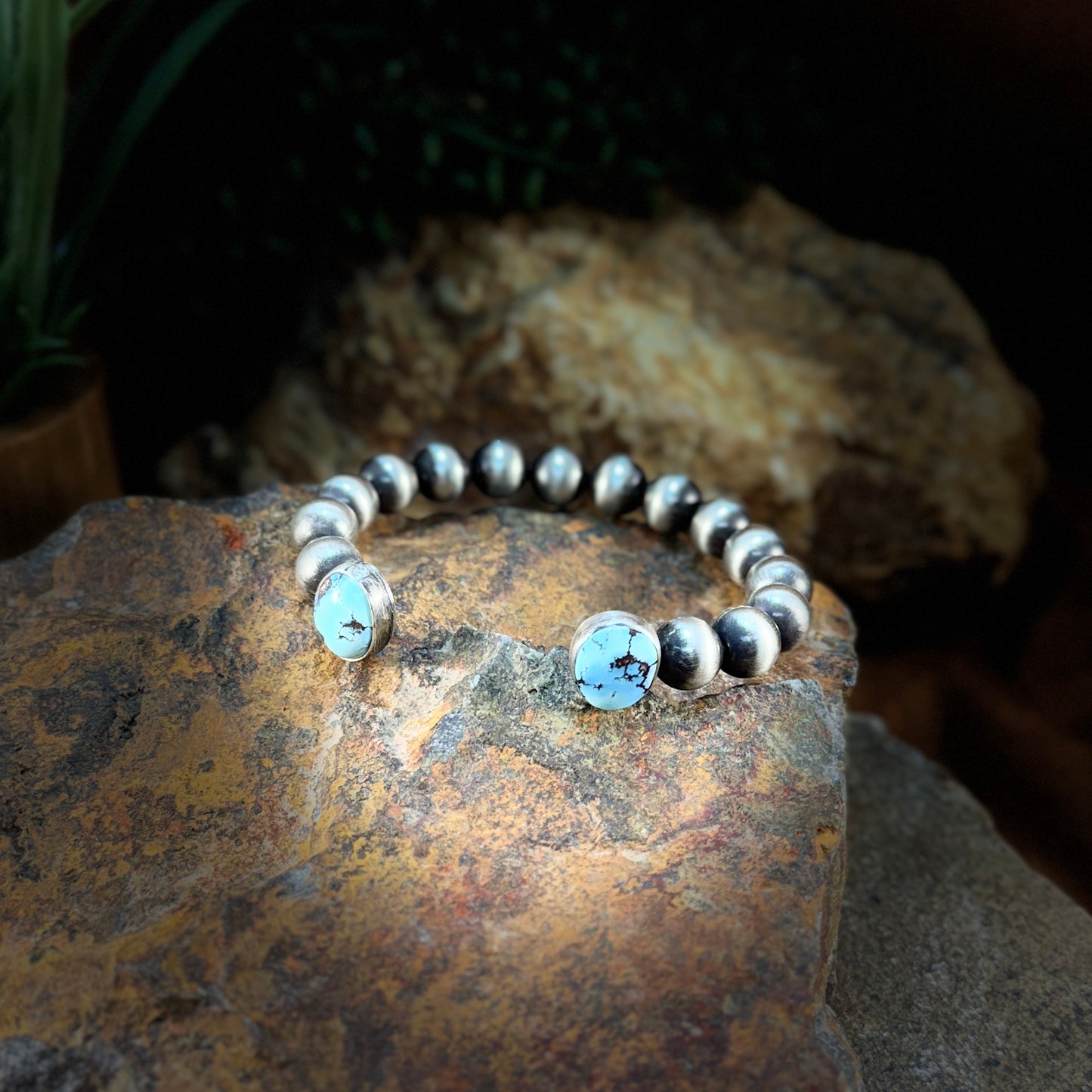 Golden Hill Turquoise Sterling Silver Navajo Bead Bracelet by Loretta Delgarito