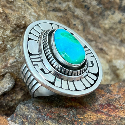 Kingman Turquoise Sterling Silver Ring by Leonard Nez Size 10 - Adjustable