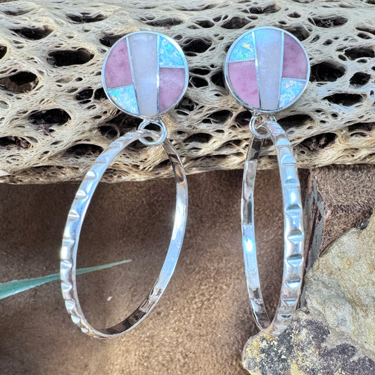 David Rosales Make Me Blush Inlaid Sterling Silver Earrings Hoops