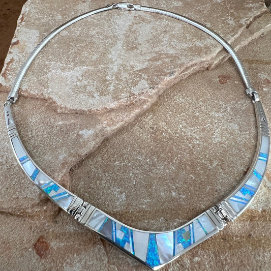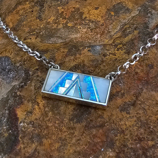 David Rosales Mystic Pearl Inlaid Sterling Silver Necklace