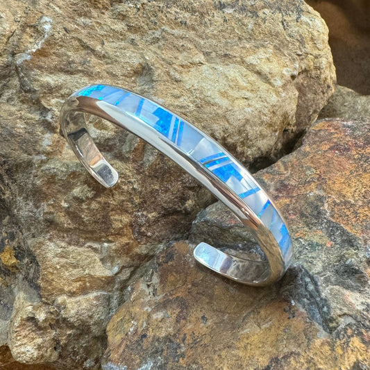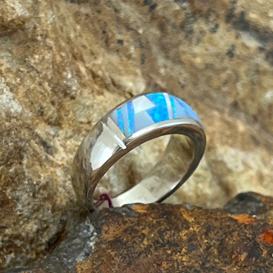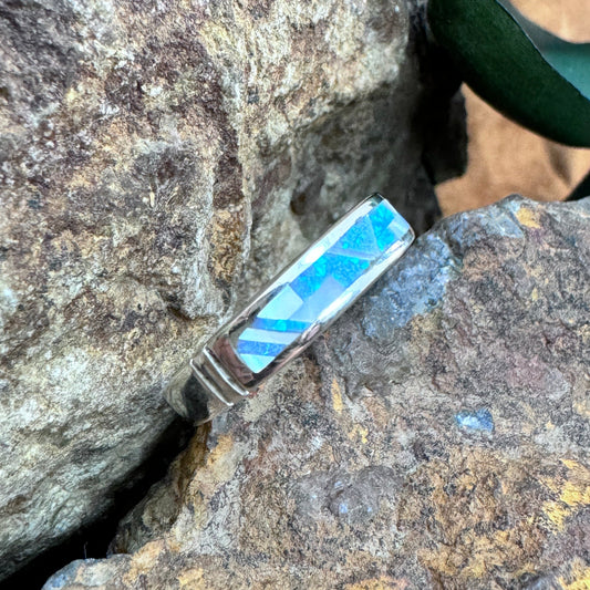 Mystic Pearl Collection from David Rosales Designs, features Mother of Pearl and Lab Opal in a Fancy Inlay Pattern.