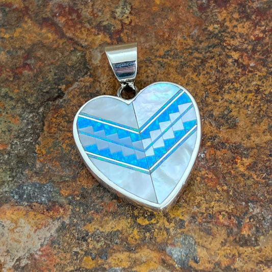 David Rosales Mystic Pearl Inlaid Sterling Silver Pendant Heart