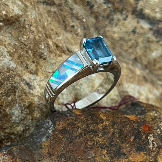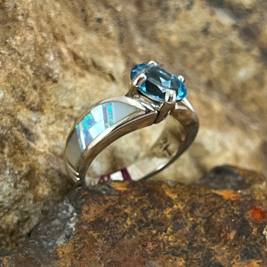 David Rosales Mystic Pearl Inlaid Sterling Silver Ring w/ Blue Topaz
