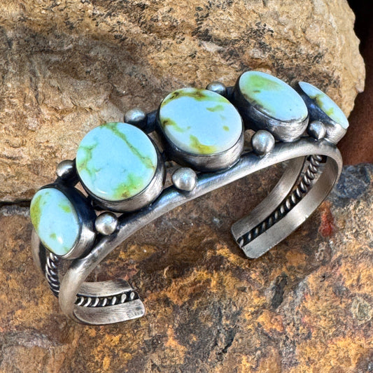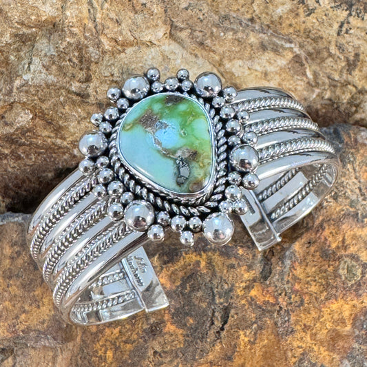 Apache Blue Turquoise Sterling Silver Bracelet by Leonard Nez