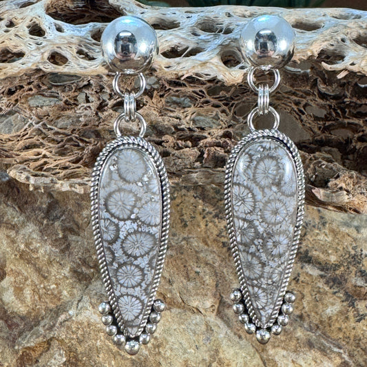 Jurassic Flint Dangle Earrings with Sterling Silver by Artie Yellowhorse
