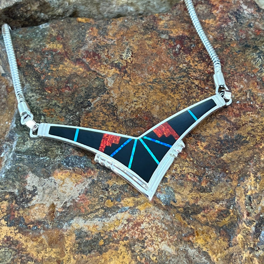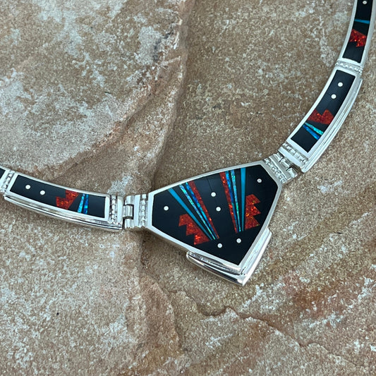 David Rosales Red Moon Fancy Inlay Sterling Silver Necklace