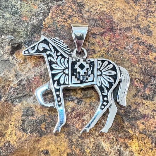 David Rosales Silver Country Inlaid Sterling Silver Pendant Horse