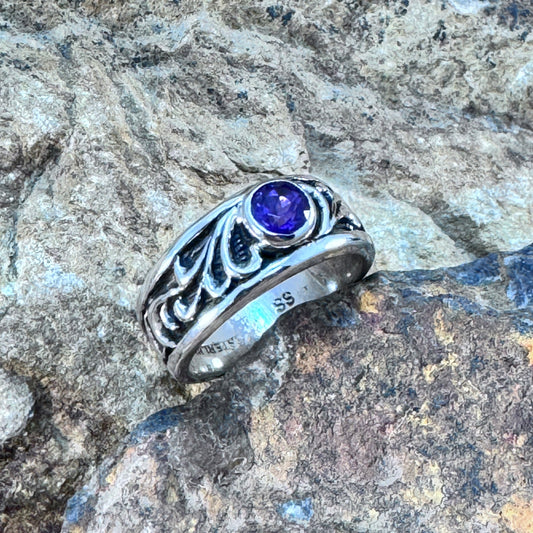 David Rosales Sterling Silver Country Scroll Ring w/ Amethyst