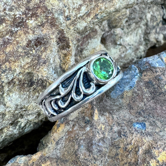 David Rosales Sterling Silver Country Scroll Ring w/ Peridot