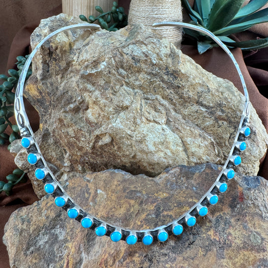 Needle Point Sleeping Beauty Turquoise Squash Blossom Necklace by Lorna Mahkee - Set