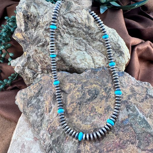 18" Royal Lapis & Sleeping Beauty Turquoise Single Strand Beaded Necklace by Artie Yellowhorse