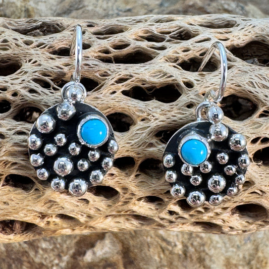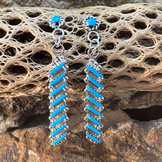 Sleeping Beauty Turquoise Petite Point Zuni Earrings by Harvey Kallestewa