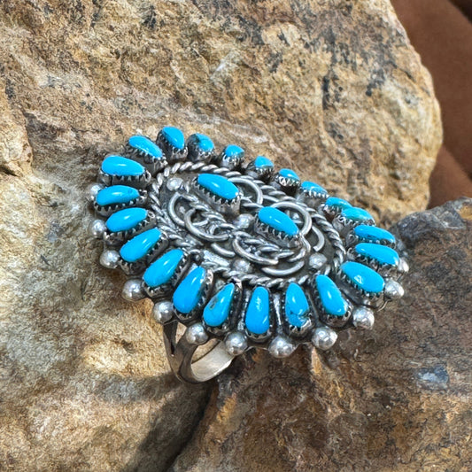 Sleeping Beauty Sterling Silver Triple Twist Ring by Artie Yellowhorse