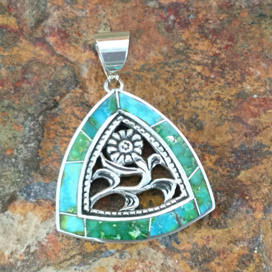 David Rosales Sonoran Gold Turquoise Inlaid Sterling Silver Pendant