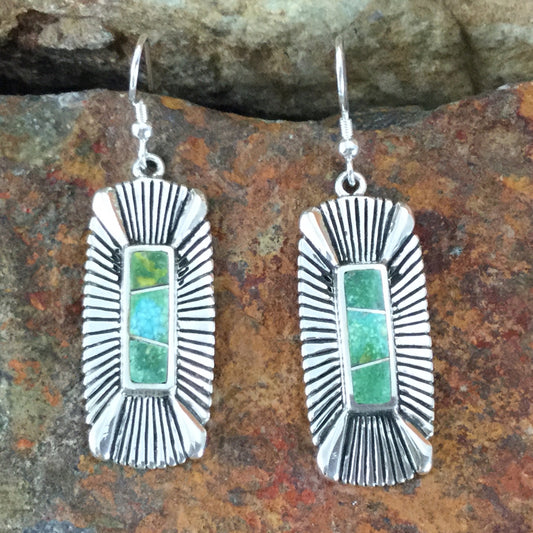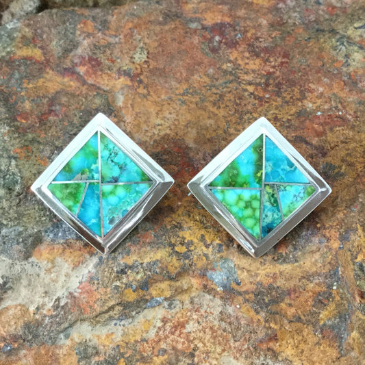 David Rosales Sonoran Gold Turquoise Inlaid Sterling Silver Earrings Huggie