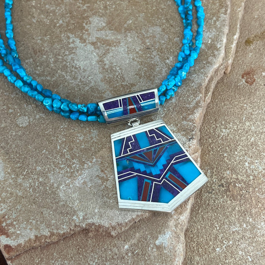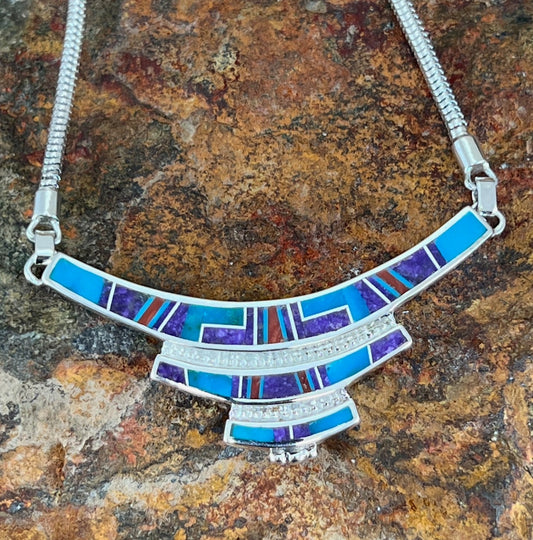 NEW David Rosales Summer Sunset Inlaid Sterling Silver Necklace