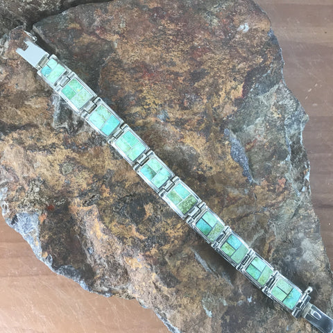 David Rosales Sonoran Gold Turquoise Inlaid Sterling Silver Link Bracelet