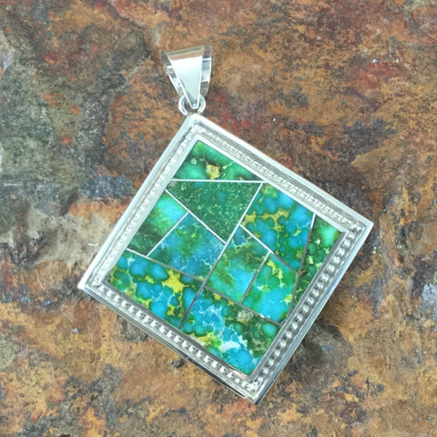 David Rosales Sonoran Gold Turquoise Inlaid Sterling Silver Pendant
