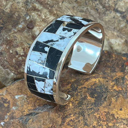 David Rosales White Buffalo Inlaid Sterling Silver Bracelet