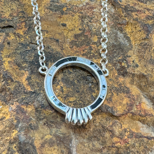 David Rosales White Buffalo Inlaid Sterling Silver Pendant