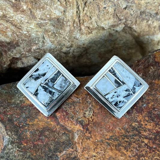 David Rosales White Buffalo Inlaid Sterling Silver Earrings