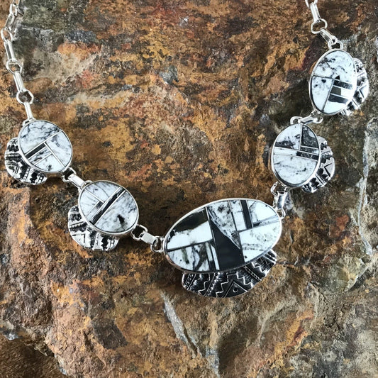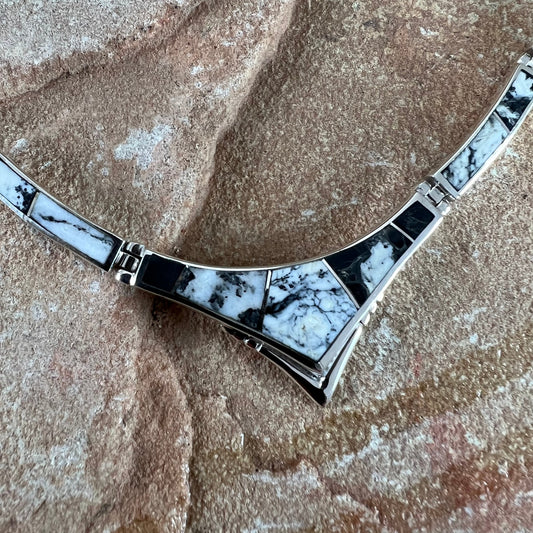 David Rosales White Buffalo Inlaid Sterling Silver Necklace