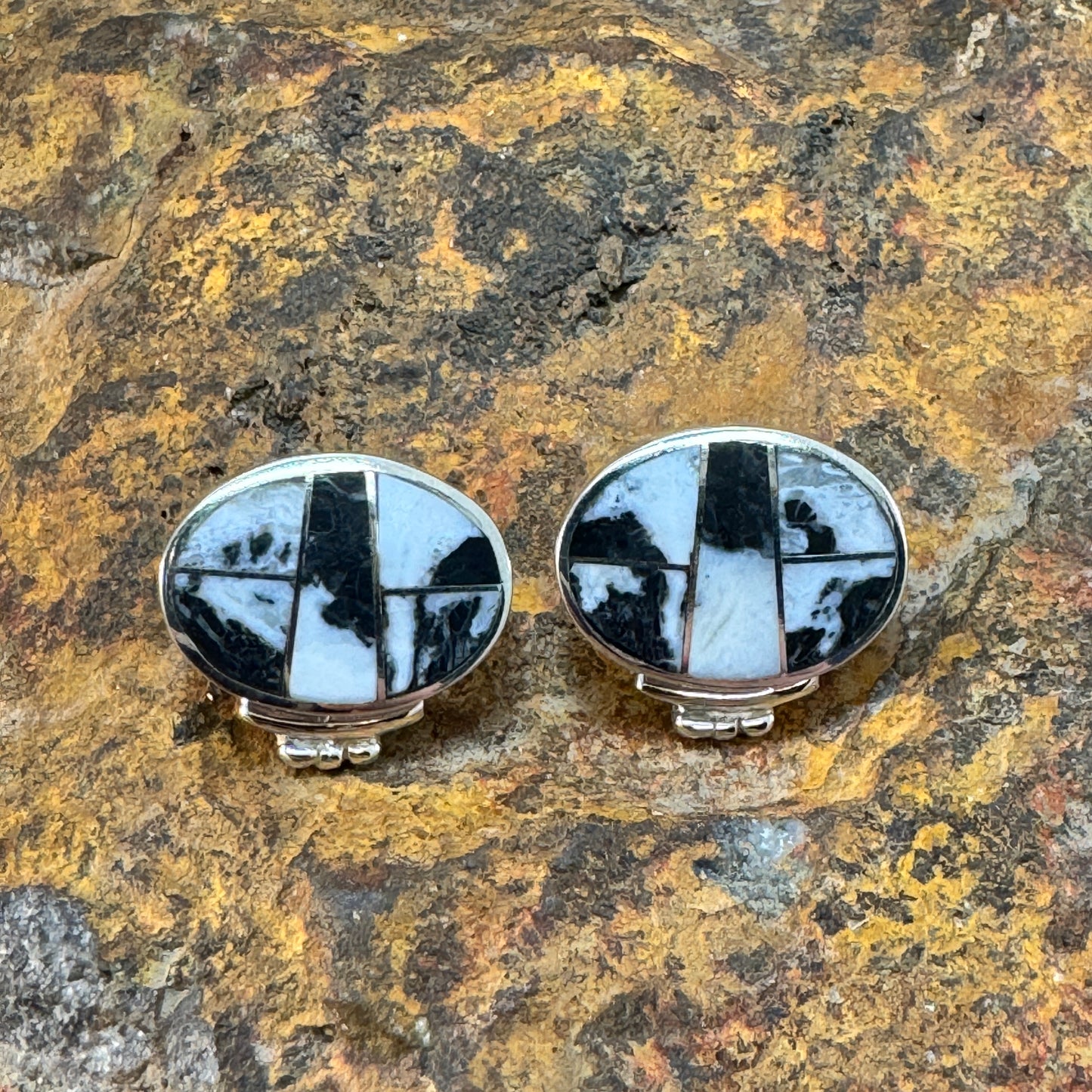 David Rosales White Buffalo Inlaid Sterling Silver Earrings