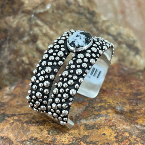 David Rosales White Buffalo Inlaid Sterling Silver Bracelet