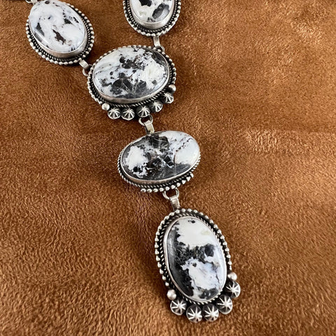 David Rosales White Buffalo Inlaid Sterling Silver Necklace