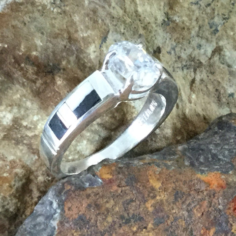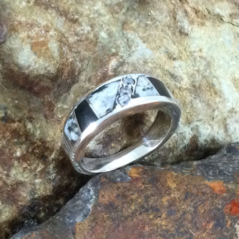 David Rosales White Buffalo Inlaid Sterling Silver Ring w/ Cubic Zirconia
