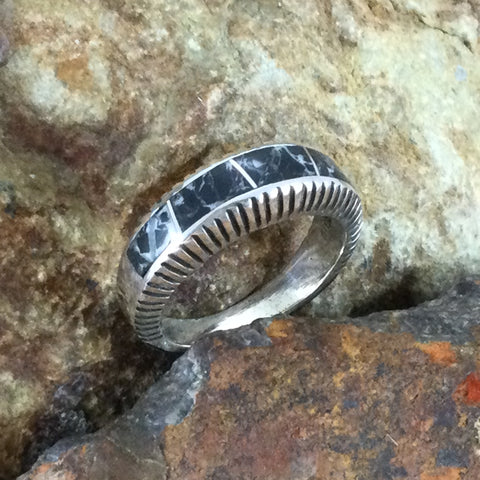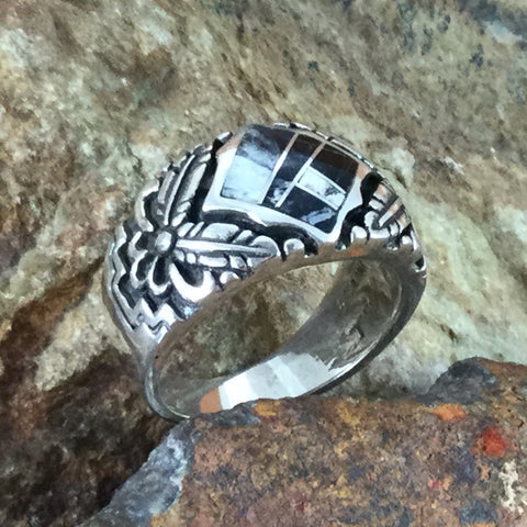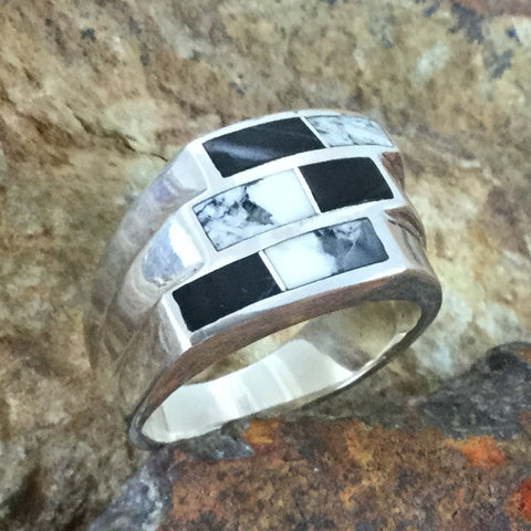 David Rosales White Buffalo Inlaid Sterling Silver Ring