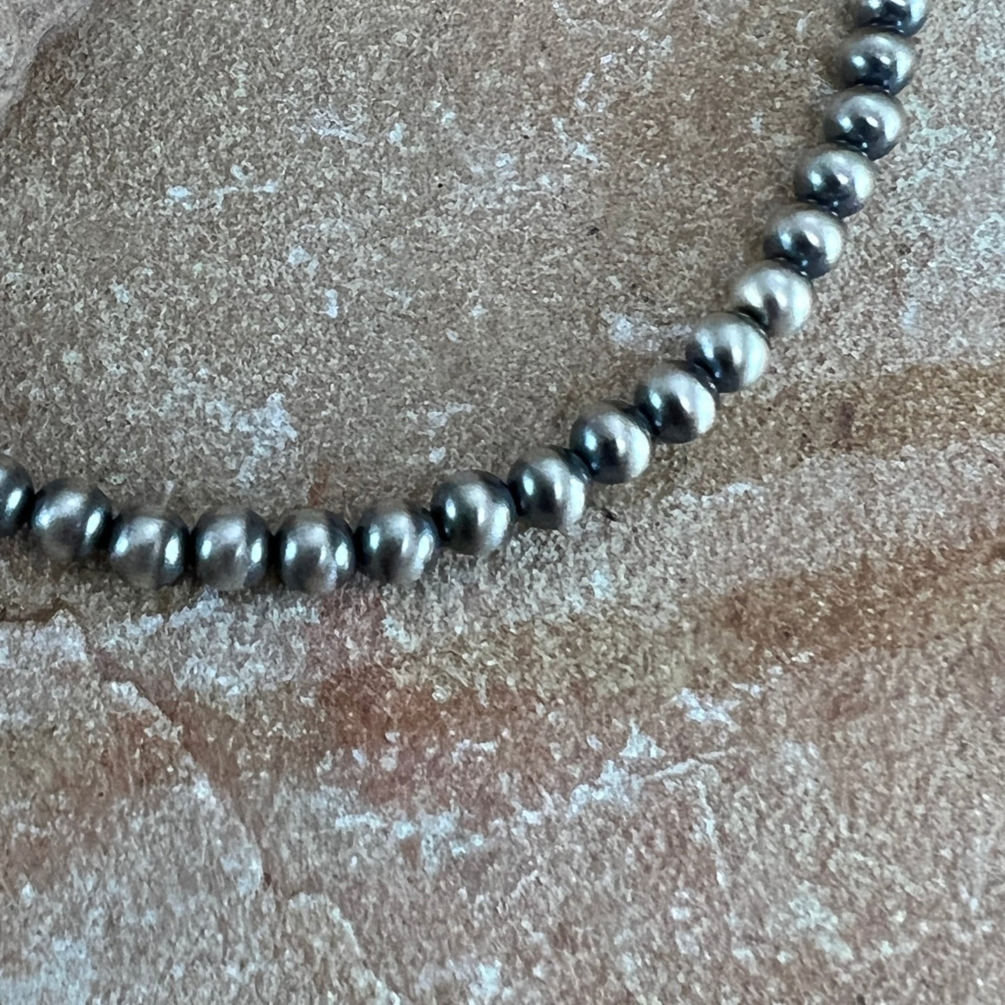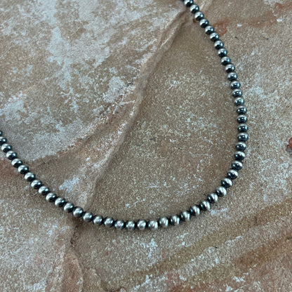 18" Single Strand Oxidized Sterling Silver Beaded Necklace 6 mm