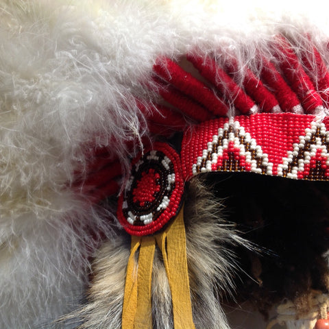 Each headdress we offer is handcrafted with care, guided by traditional designs and the artist’s interpretation of color, balance, and cultural symbolism. These pieces are created to honor the tribes they represent—not as costumes, but as respectful replicas suitable for ceremonial use or meaningful home display. Colors may appear differently depending on your screen settings; if the item is in stock, the photo reflects the exact piece you will receive. If out of stock, images are for reference only and new pieces may vary slightly in pattern or hue. While we do our best to accommodate special requests, changes can only be made using materials and colors already available in our current builds—custom-painted features or themed alterations (e.g., school or wedding colors) are not available. If you would like to pursue a design that blends color and style to match your intended use based on an existing piece, a 50% up-charge will apply to the listed price. Our goal is to respectfully represent the sacred meaning behind these works and to preserve their cultural integrity.