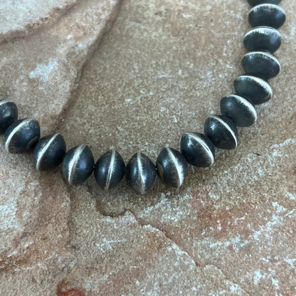 - Bead Size: Kingman Turquoise 7 mm; Sterling Silver 7.5 mm - 9.5 mm Graduated Handmade Navajo Pearls