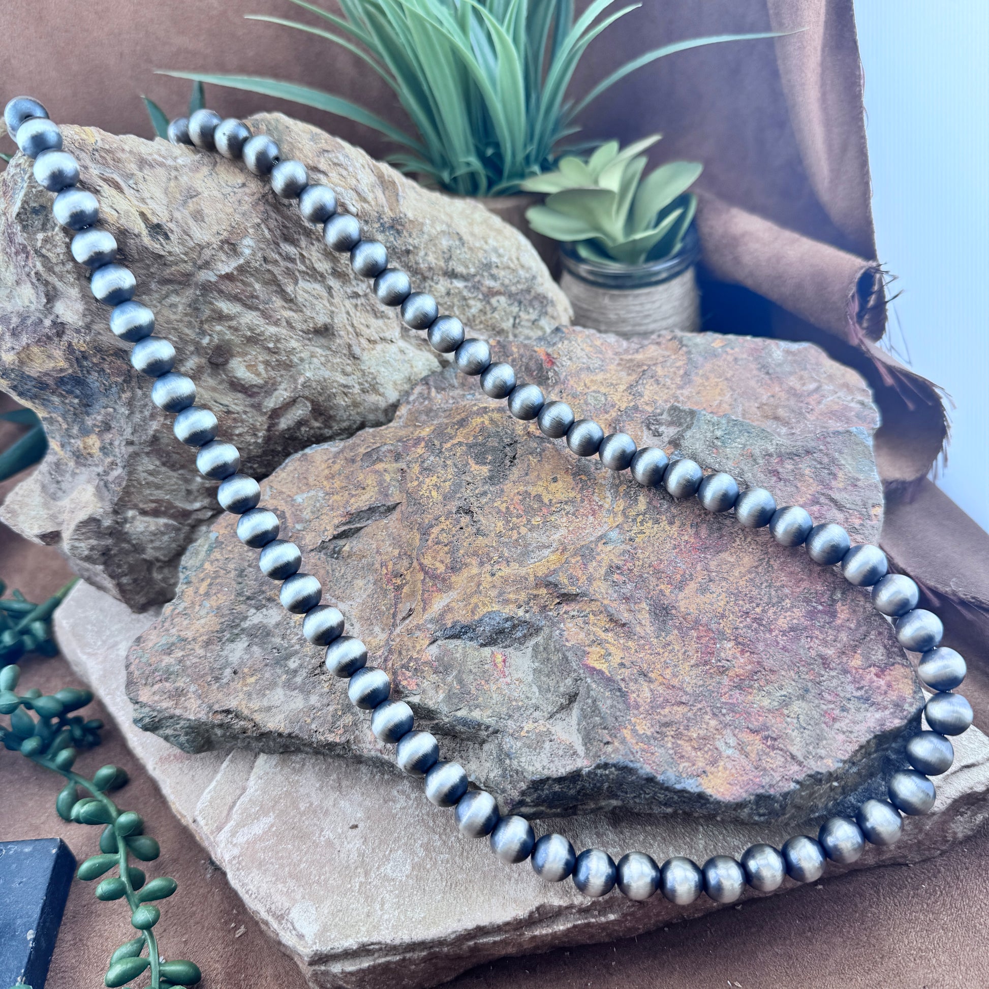 30" Navajo Pearl Necklace – 10mm Sterling Silver Navajo Pearls by Jan Mariano