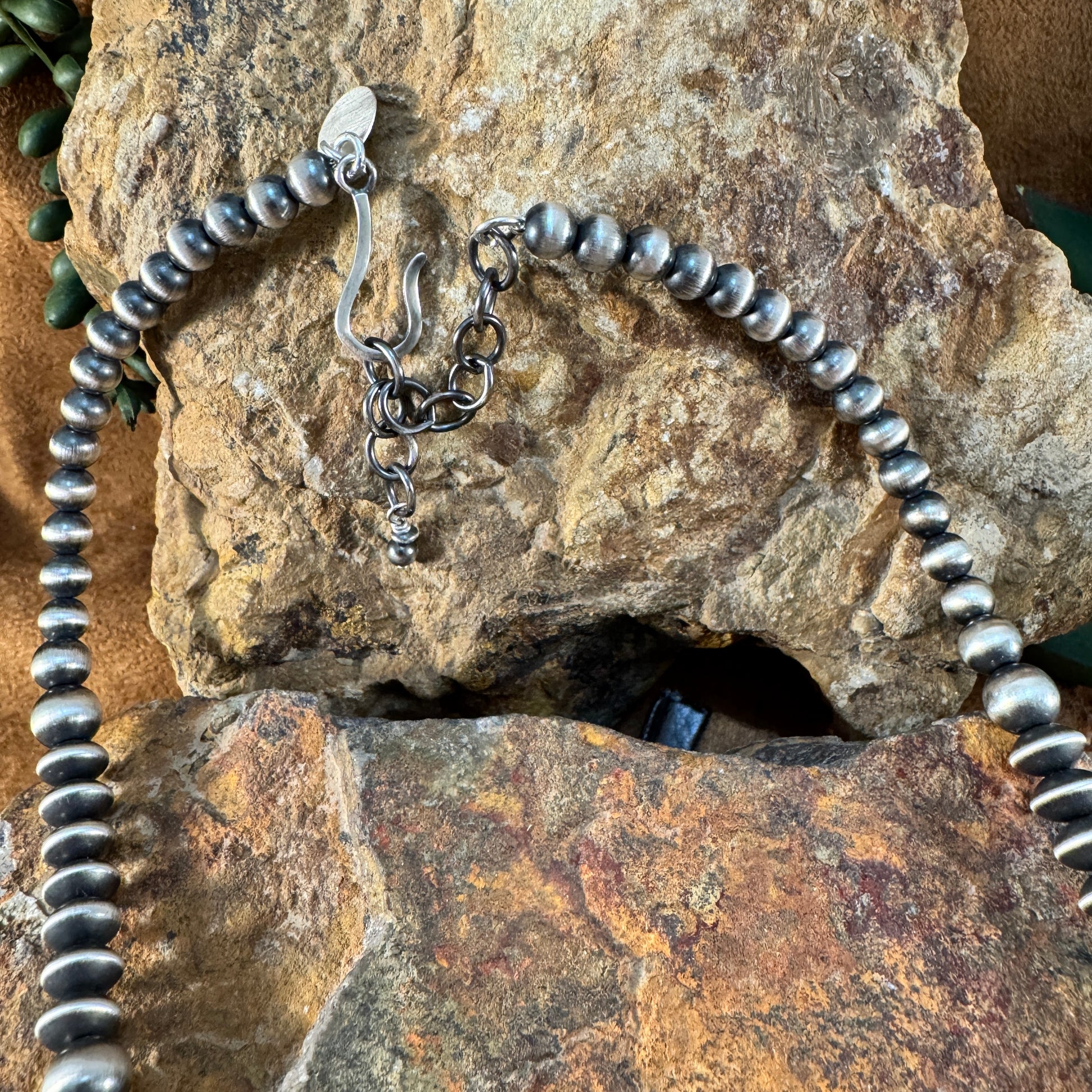 - Beads: Graduated Navajo pearls, ranging from 6mm to 12mm in diameter