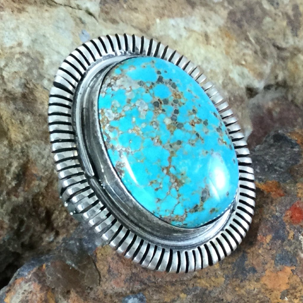 Ask a question about Carico Lake Turquoise Sterling Silver Ring by Marvin McReeves Size 7.5