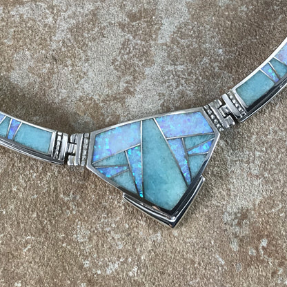 David Rosales Amazing Light Inlaid Sterling Silver Necklace