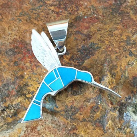 David Rosales Arizona Blue Inlaid Sterling Silver Pendant Hummingbird