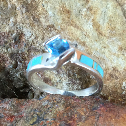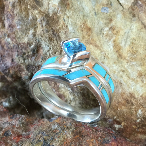 David Rosales Arizona Blue Inlaid Sterling Silver Ring Set w/ Blue Topaz
