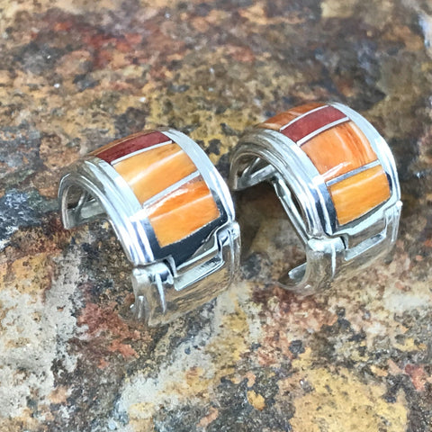 David Rosales Desert Fire Inlaid Sterling Silver Earrings