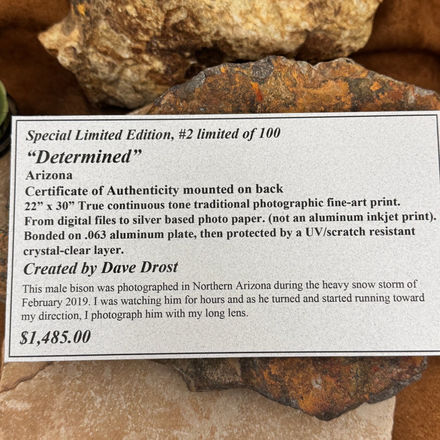 Dave produces this piece as a true continuous-tone photographic fine-art print—not an inkjet. The image is printed from a digital master file onto silver-based photo paper, yielding the rich color and depth long associated with Ilfochrome/Cibachrome-style prints. After chemical development, the print is mounted to .063 aluminum for rigidity and flatness, then sealed under a UV- and scratch-resistant crystal-clear film for long-term protection. A Certificate of Authenticity is mounted on the back. Edition is limited to 100 and individually numbered.
